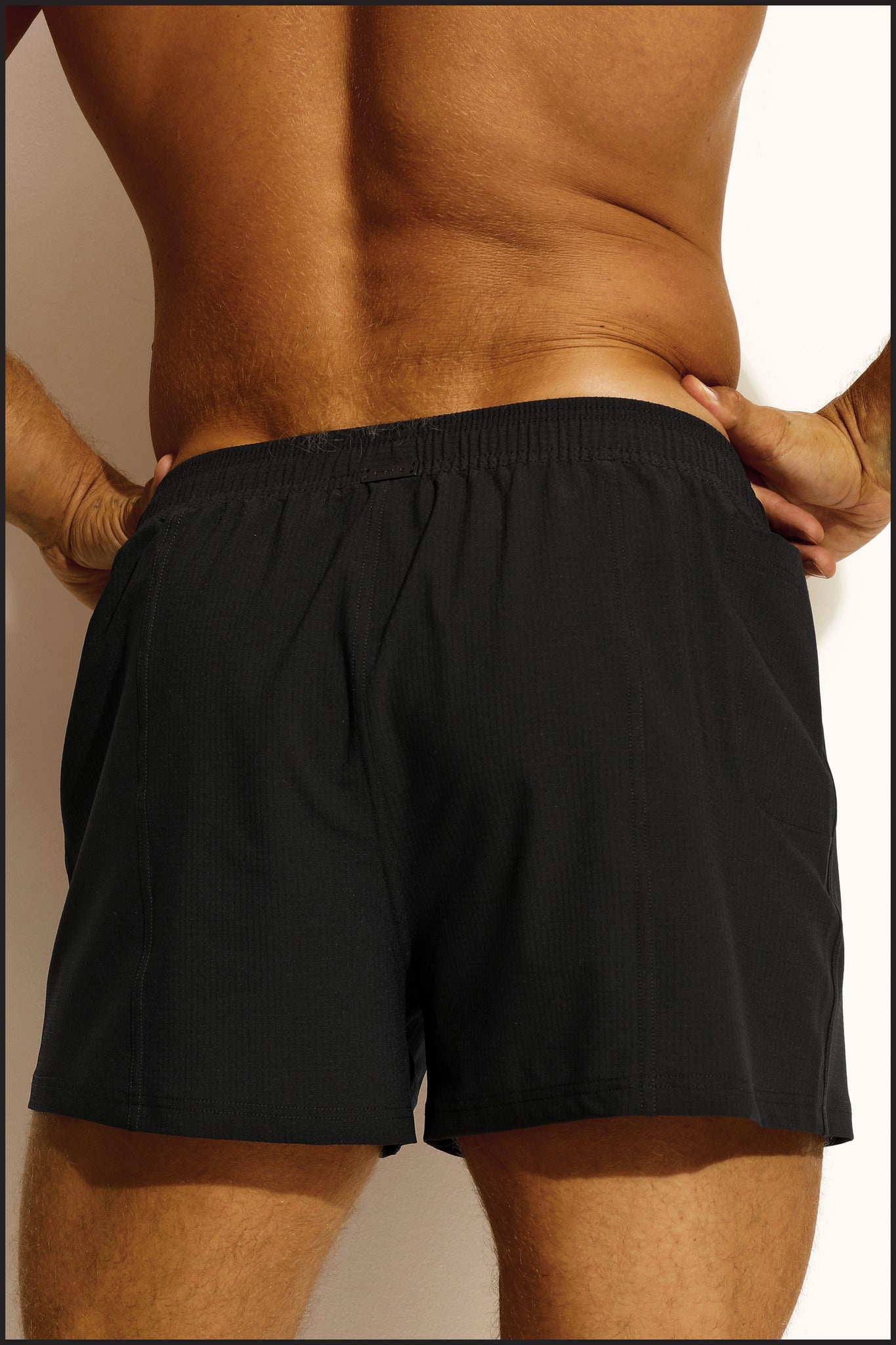 Charlie by Matthew Zink Black ripstop Football Short is unlined with a drawstring waistband and a single right hip cell phone pocket. This Football Short has a similar fit to our Gym Short.