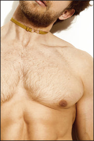 Pair of Golden 1 cm adjustable Charlie Leg Straps with gold rings, sliders and a Golden 1 cm adjustable Charlie Choker with gold ring closure and slider.